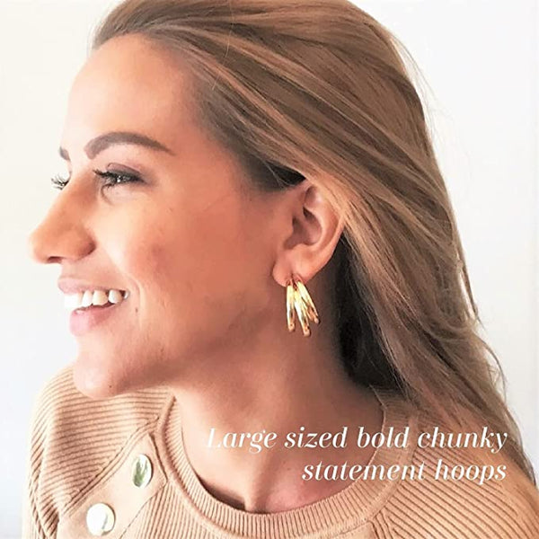 • BOLD SIZE: This chunky triple strand split hoop is our larger size and design boasts no extravagant details for simple elegance. Please check size on the models and size chart. They are also great selection for wearing every day as well as any occasion.