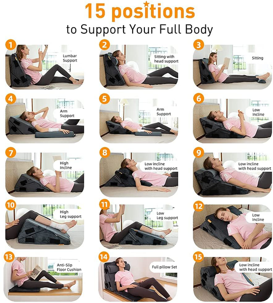 - You Deserve the Best: Say goodbye to pains! You want to recover quicker and less pain after shoulder, hip or rotator cuff surgery, get rid off lower back pain, muscle spasms or snoring and reduce acid reflux or GERD. We have designed the most effective orthopedic wedge pillows! No matter if you want to sleep, read or watch TV more comfortably, you will feel the wonders of a natural upright spine alignment on your tight neck, lower back or hips.