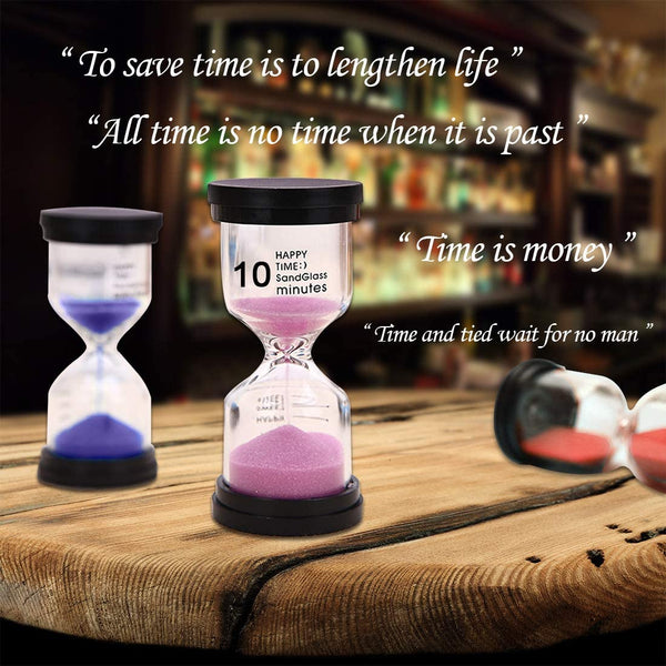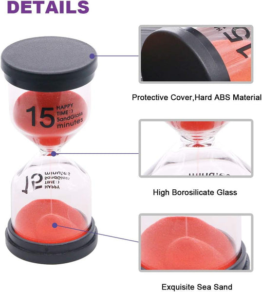 - HIGH QUALITY ----- These sander timer made of durable PVC, high borosilicate glass, sand and protective cover, which makes sand glass timer not easy to break and very durable. Using these sand timers is more enjoyable and less distracting than watching your cell phone often, and helps you stay focused and efficient for a long time.