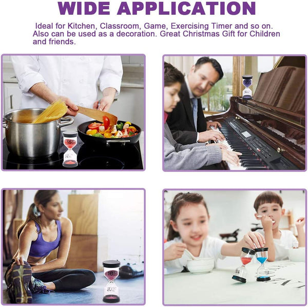 - 🌼 WIDE APPLICATIONS ----- These colorful sand timers are not only beautiful, they can also be used in a variety of applications, such as Games, Classroom use, Cooking, Exercising,kids’ tooth brushing and so on, quiet reading or game sports timers. This is a Good gifts for children.