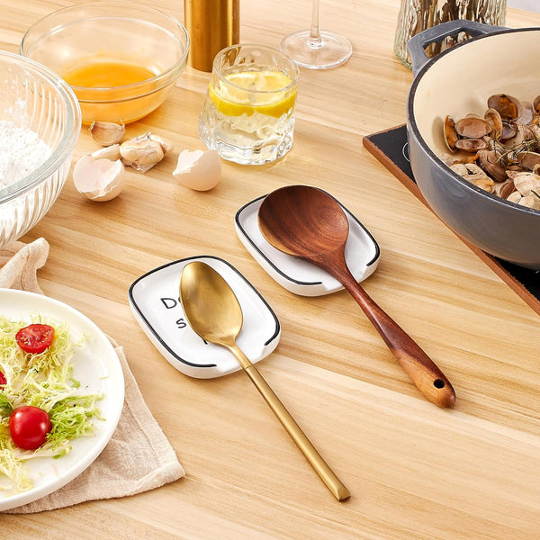 New Swuut Ceramic Spoon Rest Set of 2,Spoon Holder for Spatula, Tongs, Gadgets, Coffee Spoon, Spoon Cradle for Stove Top, Kitchen Counter (White)