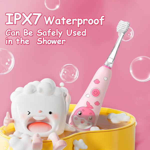 • 【High-Frequency Vibration, Smart Timing】: The child-friendly vibration frequency of 24,000 VPM gently cares for your child's teeth, like a mother's love. The scientific timing feature reminds children to switch brushing areas every 30 seconds and automatically shuts off after 2 minutes. This electric toothbrush helps children develop the habit of brushing their teeth regularly.