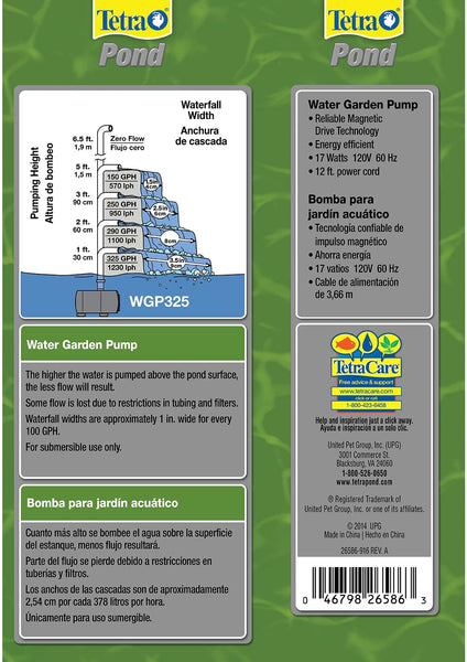 New TetraPond Water Garden Pump, Powers Waterfalls/Filters/Fountain Heads