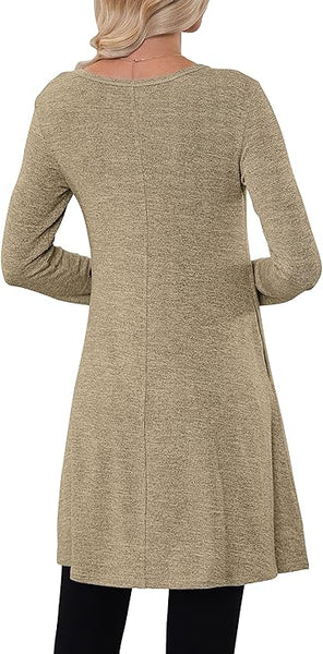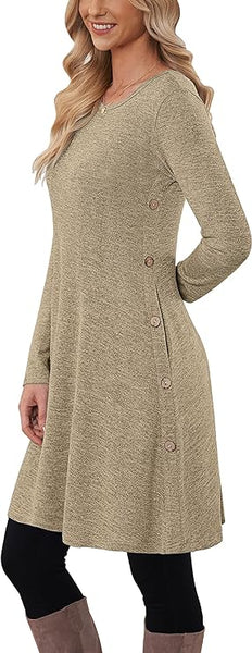 NEW TODOLOR Black Long Sleeve Dress Winter Sweater Dresses for Women Casual, Khaki, Sz L