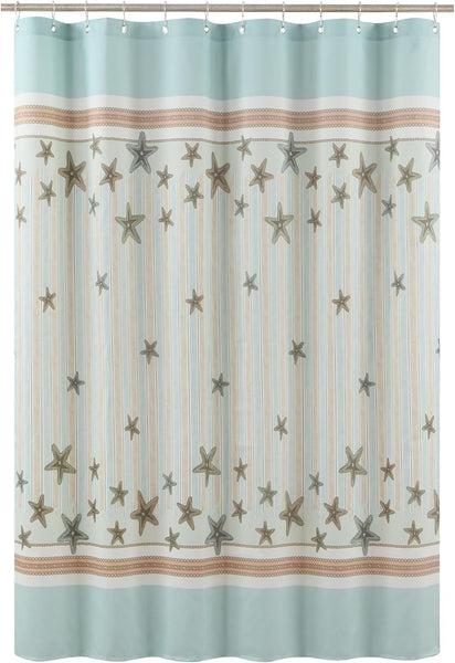 NEW Tremiti Aqua Starfish Sea Polyester Farmhouse Shower Curtain, Printed Green Striped Ocean Waterproof Modern Beach Bathroom Curtains, 72" W x 72" L
