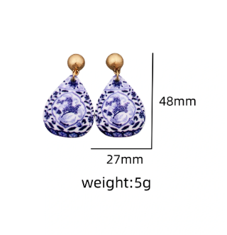 NEW Unique Qinghua Porcelain Style Acrylic Waterdrop Earrings with Chinese Retro Pattern