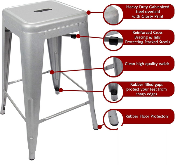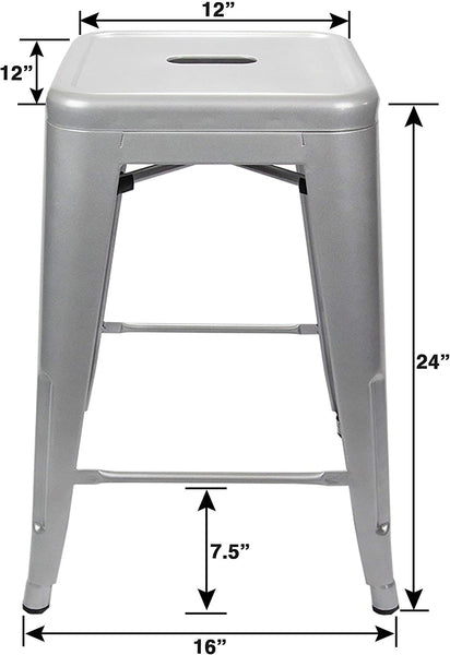 New UrbanMod 4 PACK of 24 Height 330lb Capacity Grey Kitchen Counter Chair Island Outdoor Industrial Galvanized Metal Bar Stools, Silver! Retails $275+