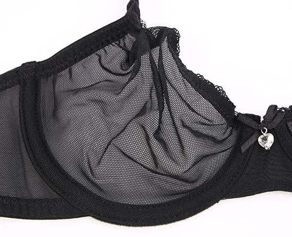 New Varsbaby Women See-Through Lace Push Up Transparent Everyday Bra & Panty in Black! Bra is 38D, Panty is XL! Fits 36C & L