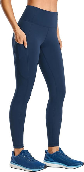 New vdbm YOGA Women's Light-Fleece Workout Leggings - High Waisted Warm Matte Brushed Tights Pants with Pockets, Navy, Sz XL