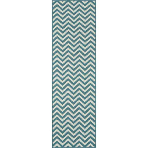 New Vibrant Great Quality Indoor/Outdoor Runner, Baja Chevron Blue 2 ft. 3 in. x 7 ft. 6 in. Indoor/Outdoor Runner! Made in Egypt! Retails $176+