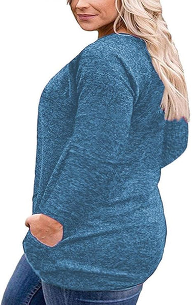 NEW VISLILY Women's Plus Size Tops Long Sleeve Buttons Casual Shirt with Pockets, Blue, Sz 2XL
