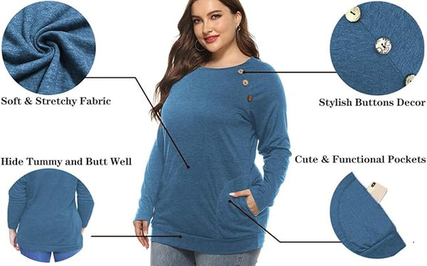 - 【Stylish Design】Plus size tops features eye-catching colors, long sleeve and buttons detailing. Perfect to hide the tummy and butt.