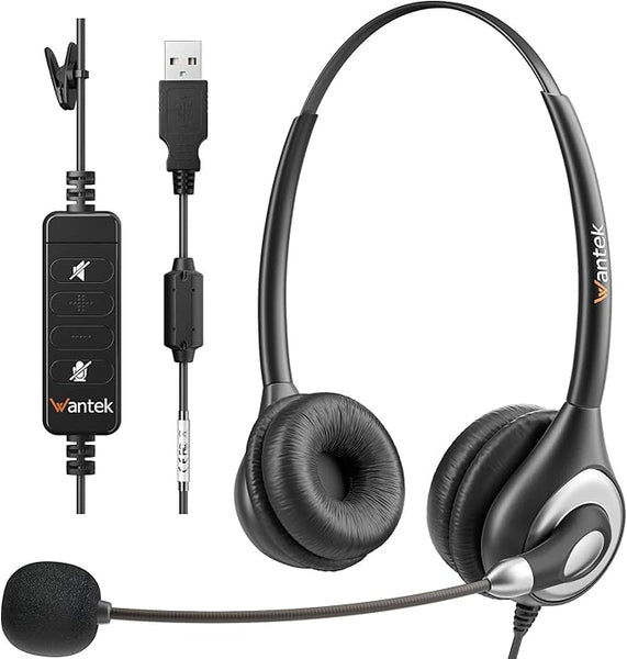 New Wantek USB Headsets with Microphone, Computer Headset with Microphone for Work, Wired USB Headphones in-line Control with Mute for Zoom Skype Webinar Home Office(UC602)
