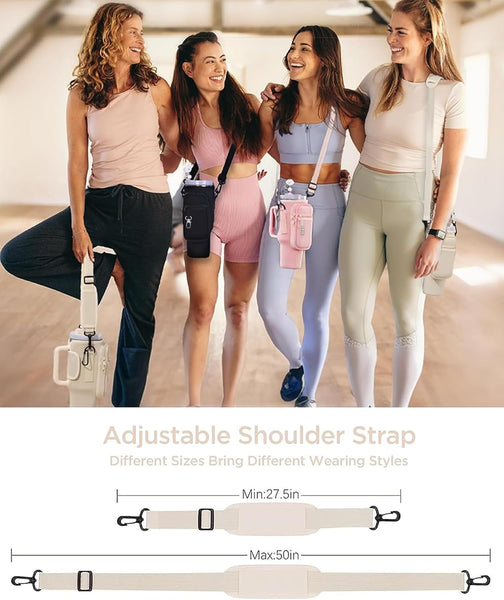 NEW Water Bottle Carrier Bag with Phone Pocket for Stanley 40/30 oz Tumbler Neoprene Water Bottle Holder Pouch with Adjustable Strap Bollus with Straw Cover & Carabiner for Stanley Cup Accessories, Cream