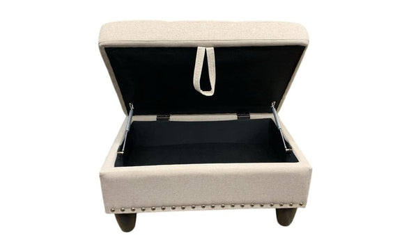 New Wayfair 28.5'' Wide Rectangle Nailhead Trim Linen Storage Ottoman in Light Beige by Red Barrel Studio! Retails $220+