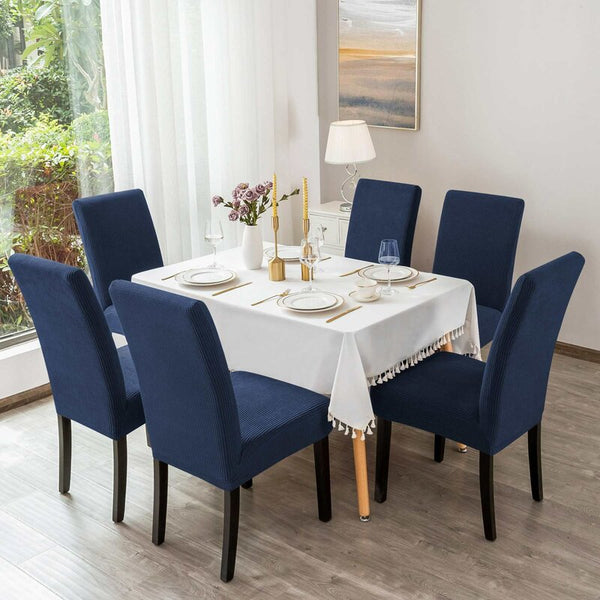 New Wayfair Enova Home SET OF 6 Soft Thick Solid Velvet Fabric Stretchy Universal Dining Chair Slipcovers (Dark Blue), Retails $27+ Winner can buy up to 5 more at winning bid!