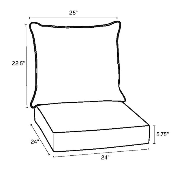 The Arden Selections Outdoor Deep Seat Cushion Set is a great way to update your outdoor conversational furniture with beautiful patterns and comfort without buying a whole new furniture set! This set comes with a large pillow back that features a welt detail and a deep seat bottom. The pillow back measures 25"W x 22.5"L x 6.5"T, and the bottom cushion measures 24"W x 24"L x 5.75"T fitting most standard deep seat style seating and club chairs. Our Evertru Printed Polyester outdoor fabric is fade resistant and offers easy cleaning with just soap and water. Inside this outdoor cushion is patented 100% everLUXE polyester fiberfill to help it retain shape and provide long-lasting comfort during outdoor use. Fibres within are oriented in a vertical position, which provides structure and springing replacement patio cushions. This outdoor cushion is UV treated and is intended for use on your patio or deck; however, we recommend bringing it indoors when it rains or when not in use to preserve its lifespan and keep it looking beautiful.