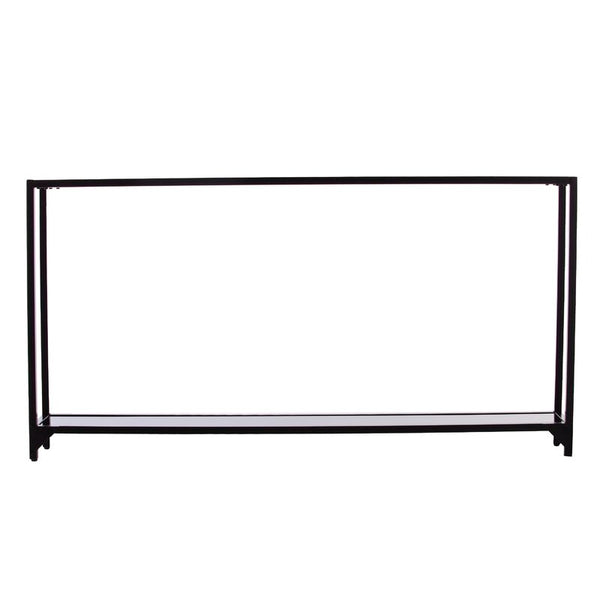 Modern and minimalist, this console table brings a taste of what’s trending to your entryway or living room layout. Crafted from metal, its clean-lined frame sports an understated solid finish that’s versatile enough to complement most colour palettes. The top and open lower shelves are made from tempered glass for a sleek touch. This design is narrow enough for smaller spaces, but still wide enough to offer plenty of display space. Assembly is required.