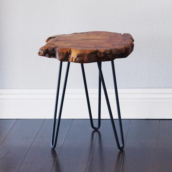 This plant stand/mini table has a unique natural charm. It can be used as a display stand, stool, or table. It is also perfect to be used as a nightstand in the bedroom or as an end table in a living room. You can put this end table next to a sofa, chair, or bed. Whether for seating or simply as a trinket display, this end table is a great conversation piece and as handy as they are beautiful.