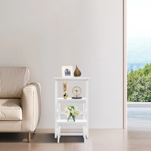 The stable structure and sturdy material of this product can effectively protect the personal safety of users. The reversible design makes storage more convenient. And it has a stylish appearance, which can better adapt to different occasions. 3 tiers ladder chair can help you to finish your work at high places, also can be used as a flower stand on the balcony, and can be used as a coffee table, side table or chair.