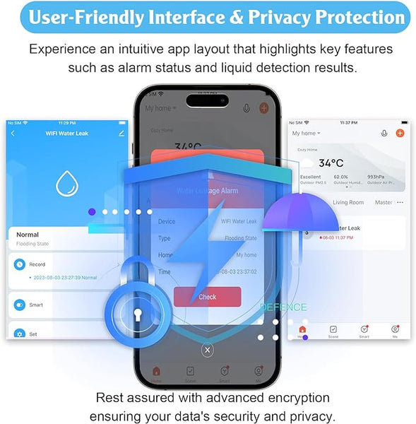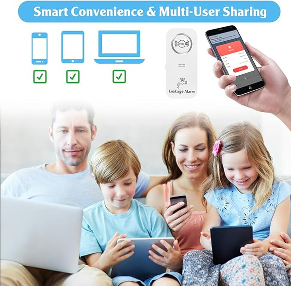 - Effortless Setup, User-Friendly Convenience: Installation is effortless – simply insert batteries, scan, download the application, and you'll swiftly connect. This swift setup ensures convenient protection of your space from potential water damage. Additionally, it allows access from multiple devices, such as smartphones, computers, or tablets.