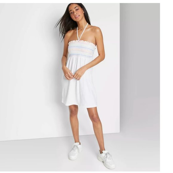 New Wild Fable Womens Dress Sleeveless Smocked Terry Convertible Dress White, Sz X L! Great as a dress, cover up or to wear after shower/hot tub!