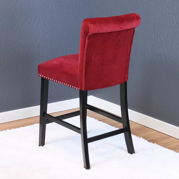 Round out your kitchen island or home bar in elegant style with these tastefully tufted stools. Arriving in a set of two, these armless stools are made with a solid and engineered wood frame, and they're wrapped in rich velvet upholstery in your choice of jewel tone. The rolled back and seat are filled with foam, offering you lots of cushioned support during weeknight meals or holiday dinners. Sleek. tapered legs in a warm espresso finish have a wraparound footrest to keep you comfy. Plus, they're accented with nailhead trim on the bottom of the seat for an added layer of charm in your space. These stools accommodate up to 225 lbs. Round out your kitchen island or home bar in elegant style with these tastefully tufted stools. Arriving in a set of two, these armless stools are made with a solid and engineered wood frame, and they're wrapped in rich velvet upholstery in your choice of jewel tone. The rolled back and seat are filled with foam, offering you lots of cushioned support during weeknight meals or holiday dinners. Sleek. tapered legs in a warm espresso finish have a wraparound footrest to keep you comfy. Plus, they're accented with nailhead trim on the bottom of the seat for an added layer of charm in your space. These stools accommodate up to 225 lbs.