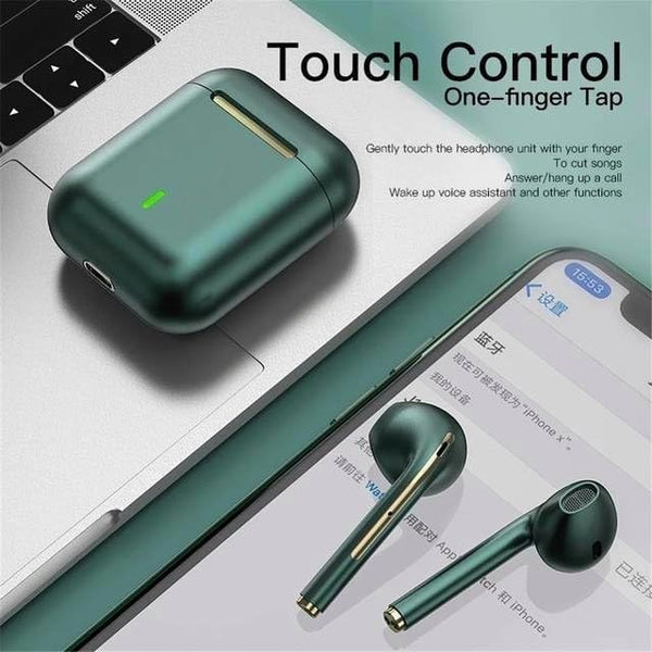 New Wireless Earbuds Bluetooth for Android and iOS Earphones TWS Ear Buds HiFi Stereo with Mic Pro 6 Sport Headset J18 Metallic Design (Navy Blue)