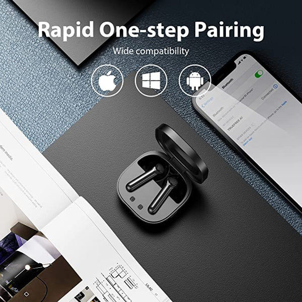 New Wireless Earbuds Truefree A1 Bluetooth Earphones Wireless Headphones with 4 Mics, Immersive Stereo Sound by 14.2mm Driver, ENC for Clear Calls, USB-C Charge, 18 Hours of Playtime, Single/Twin Mode