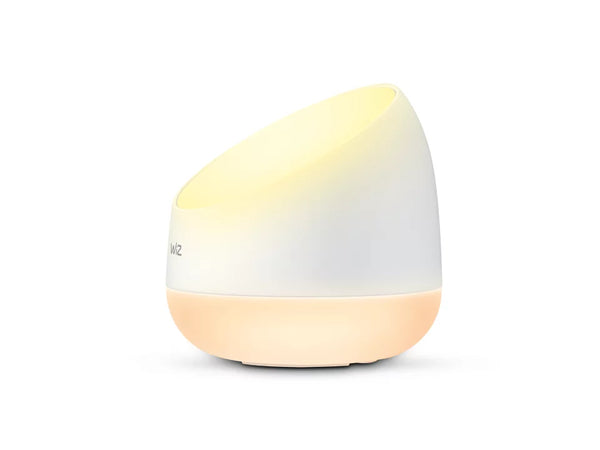 Bring smart light to any corner of your space with the WiZ Squire dual zone table lamp, which casts colorful light onto the wall. Use with the WiZ app or your voice to dim and brighten or use preset light modes on Wi-Fi setups.