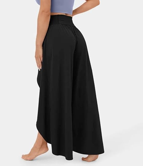 NEW Women Palazzo Flowy Split Wide Leg Pant, Boho High Waist Slit Wide Leg Quick Dry Casual Pants Beach Trousers (XXL,Black)