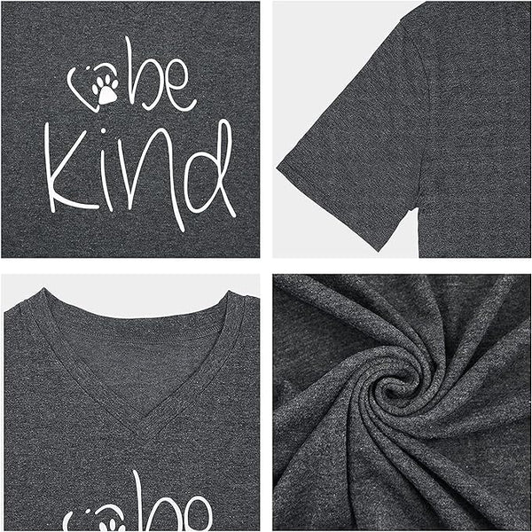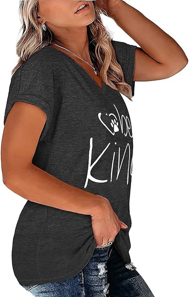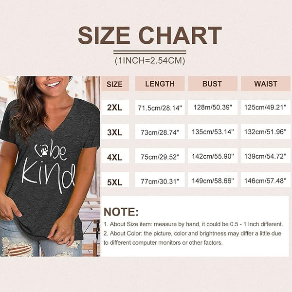 NEW Women Plus Size Be Kind T Shirt Summer V Neck Cute Graphic Tees Funny Inspirational Teacher Tops, Grey, Sz 3X, Fits Like 1X-2X