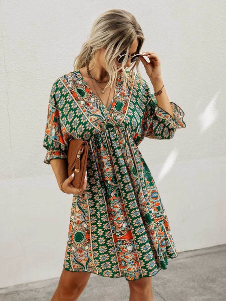 New Women's Shein All Over Print Wrap Neck Tie Back Dress, Multi, Sz L! Rated 4.73 out of 5 stars! "Fits True, comfortable fabric"