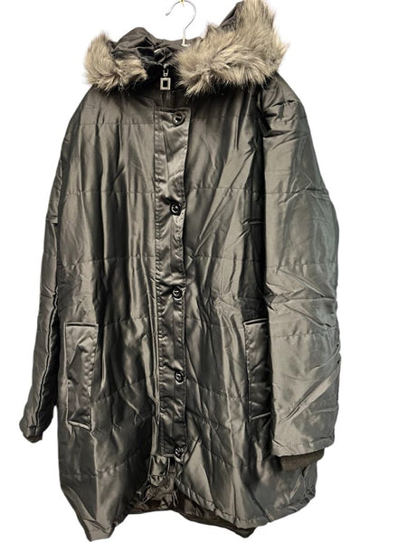 New Women's 3/4 Length Puffer Jacket with Faux Fur trim Hood, Black, Sz XXL