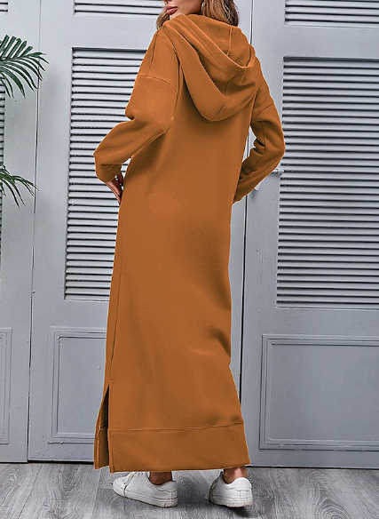 NEW Women's Casual Dress Hoodie Dress Long Dress Maxi Dress Daily Basic Outdoor Vacation Going out V Neck Pocket Solid Color Regular Fit, Caramel, Fits XL-1X, Retails $53