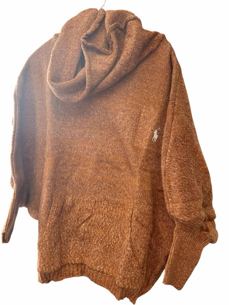 New women's cowl neck knit sweater with front kanga pocket in rust Sz M! Has white polo horse logo on left side chest