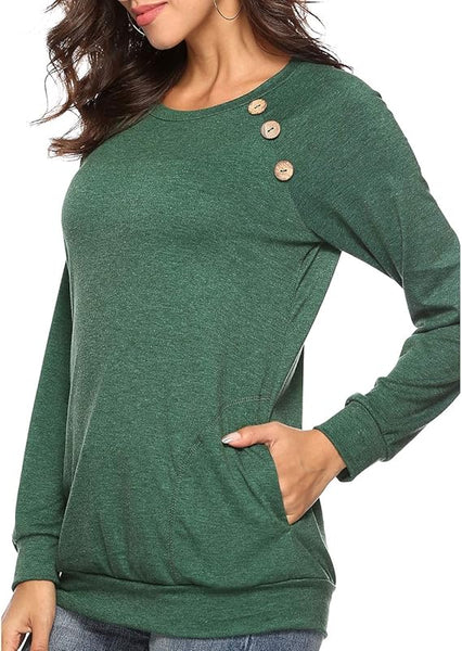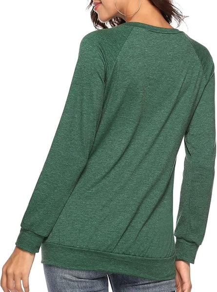 NEW Women's Long Sleeve Button-Down Blouses Crew Neck Pullover Casual T Shirt Loose Tunic Tops, Green, Plus Size 22W
