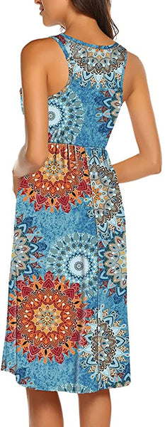 New Women's Mandala Print Summer Dress Casual Sleeveless Flowy Sun Dress with Pockets, pattern as shown in main pic! Size Large