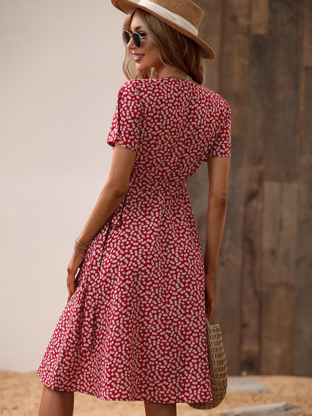 New Women's Shein Ditsy Floral Print Knot Side Wrap Dress, Sz L! Rated 4.81 out of 5 stars! True Size, Fits nicely. Looks exactly same as picture