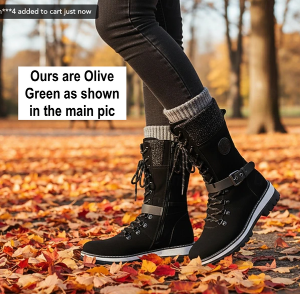 New Women's Winter Lace-Up Snow Boots with Knit Cuff – Warm Waterproof Outdoor Combat Boots with Side Zipper and Anti-Slip Sole for Cold Weather and Hiking OLIVE Sz 8