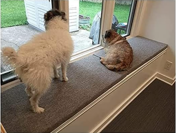 New bench or window sill cushion for indoor or outdoor use! Grey piped edge cushion with removable cover. 46 inch x 23 inch x 2.5 inch thick