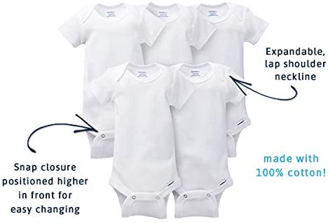- Includes eight white Gerber short sleeve onesies bodysuits