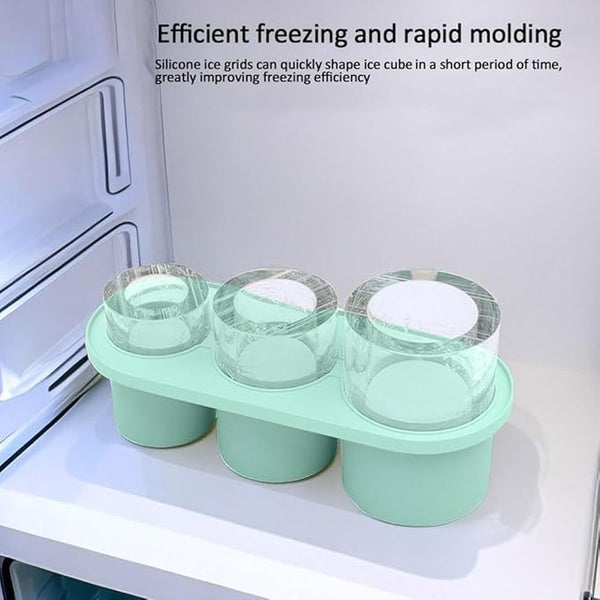 New Green Ice Cube Tray for Stanley, Silicone Ice Cube Maker with Lid for Making 3 Hollow Cylinder Ice Cube Molds, Accessories for Stanley Cups 30-40 Oz for Chilling Cocktails,Whiskey,Drinks,Coffee