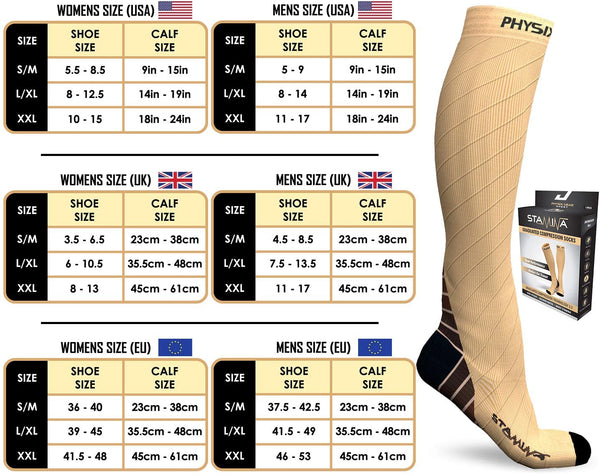 New in package! Gear Compression Socks for Men & Women (20-30 mmHg) Boost Stamina, Sz S/M ! Fits women shoe size 5.5-8.5, men shoe size 5-9!