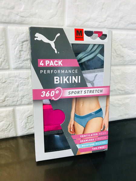 New in package! PUMA Womens Sports Stretch Bikini 4 Pack, Sz M!