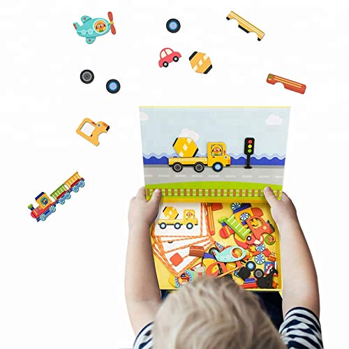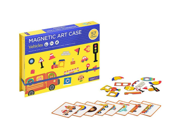 New Magnetic Art Case Toy Puzzle Game for Kids (Vehicle Puzzle Art Case) with Drawing Board