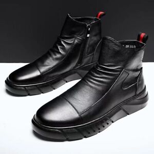 New Men's High Top Faux Leather Anti-Slip Zipper Shoes Fashion Slip-On Boots Black, Sz 47 (12) Retails $49+