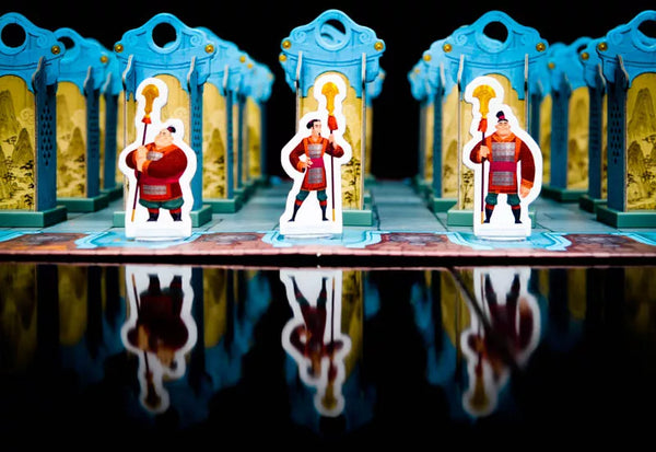 Each player moves their princess across the board, hiding her progression, while placing allies and mirrors to uncover your opponent’s princess. Escaping the palace and running off with your sweetheart will require both wits and stealth!