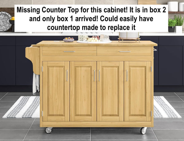NEW IN BOX! Retails $800 Home Styles Mobile Create-a-Cart Natural Finish Four Door Cabinet Kitchen Cart with Cherry Wood Top (MISSING TOP), Adjustable Shelving