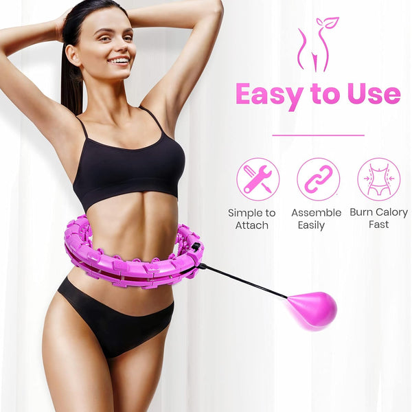 New Weighted Hula Hoops Smart Fitness Hoops for Adults Weight Loss, 24 Detachable Knots Plus 4 Extra Sections Adjustable Hula Hoop, 2 in 1 Abdomen Fitness Message Non Fall Auto Spinning Ball
